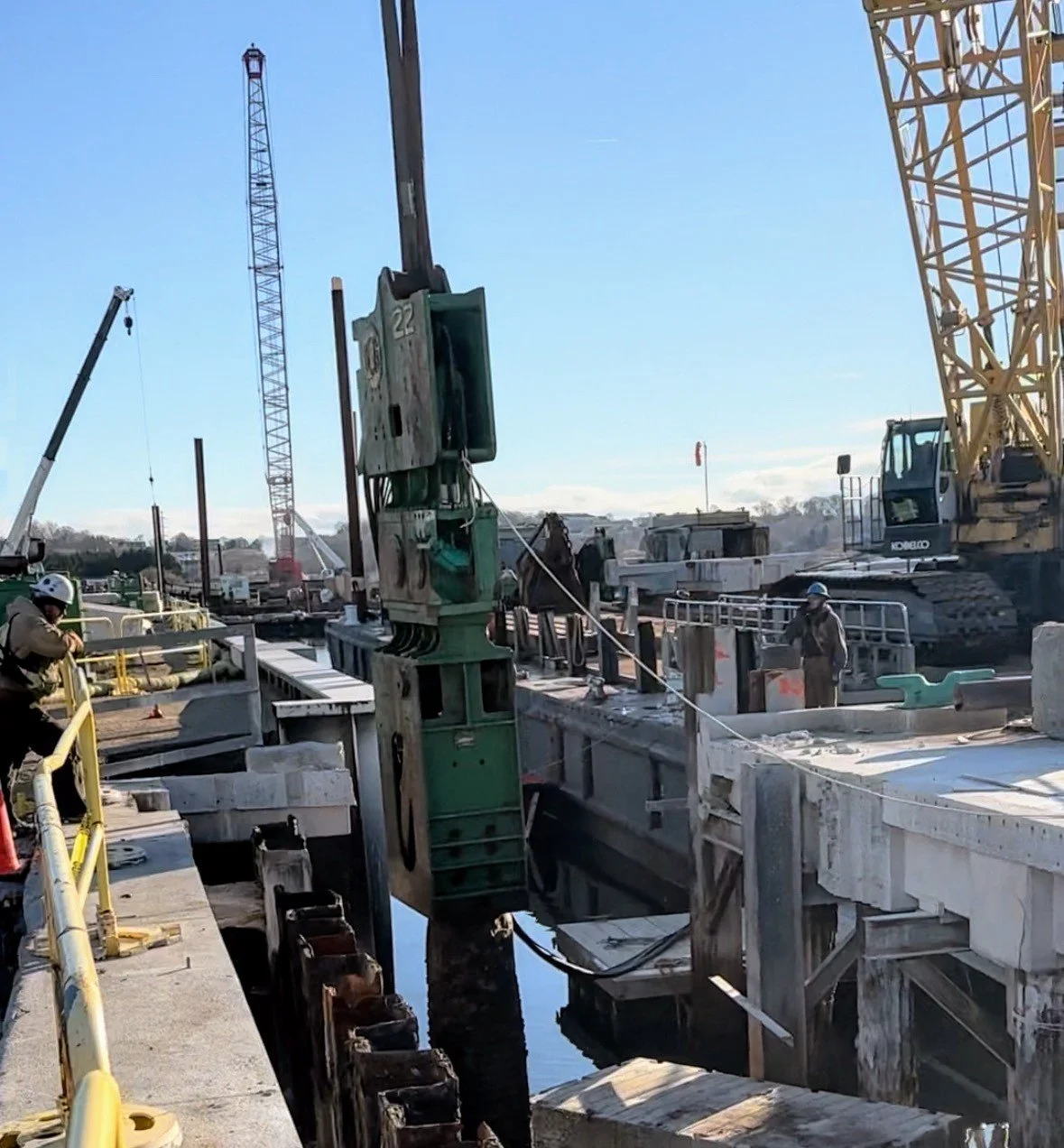 Throughout the project, Reagan Marine faced numerous challenges, from tight time constraints to difficult soil conditions. However, the reliability of ICE® equipment, especially the ICE® 22, played a crucial role in overcoming these obstacles. The ICE® Model 55 Wood Jaw Clamp effectively transmitted vibratory forces, ensuring the efficient removal of the old concrete piles and saving valuable time.